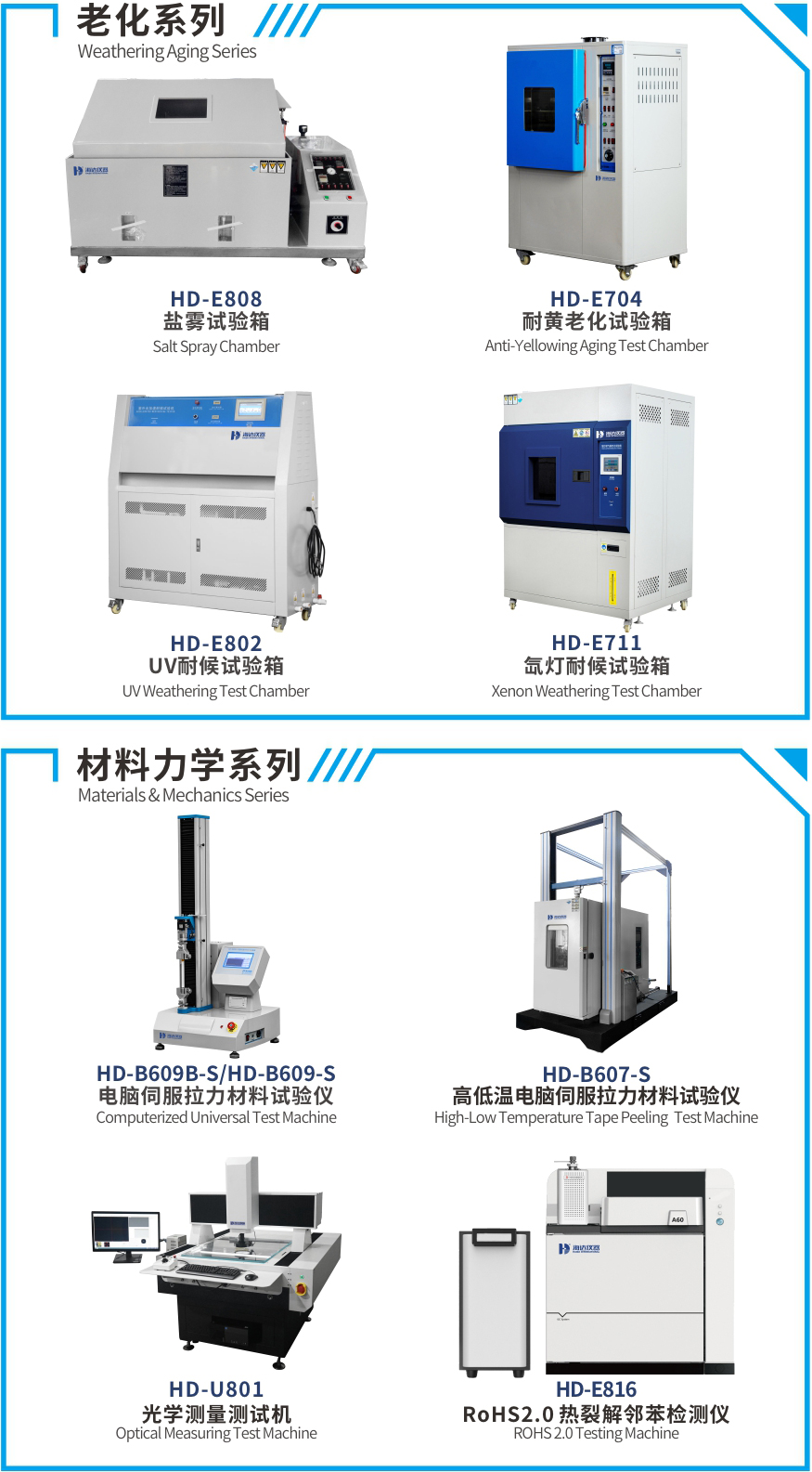 老化系列測試:鹽霧試驗箱、UV耐候試驗箱等產品可用于燈具材料在戶外的耐氣候性能評價。