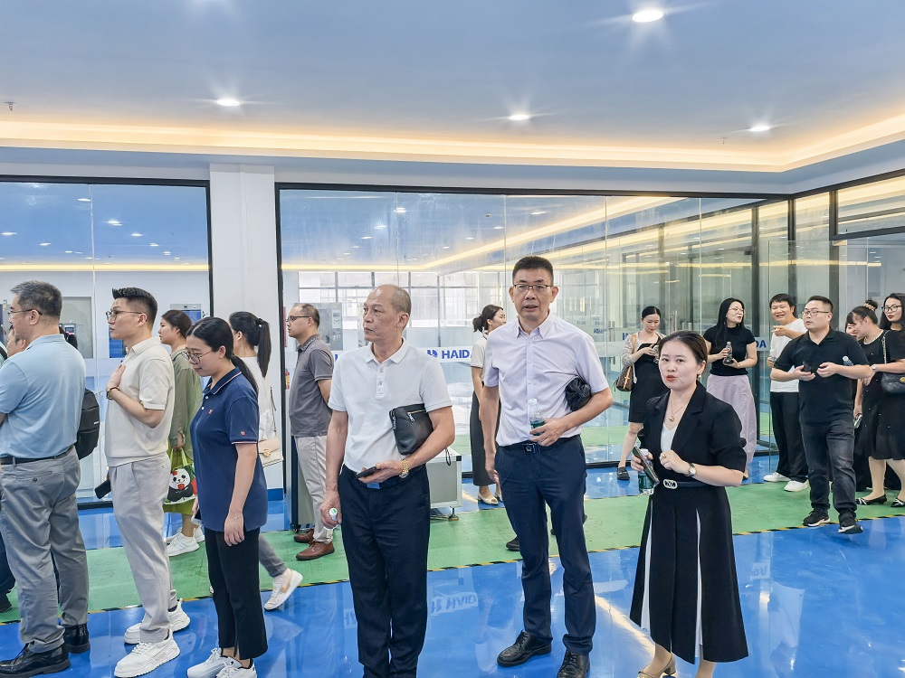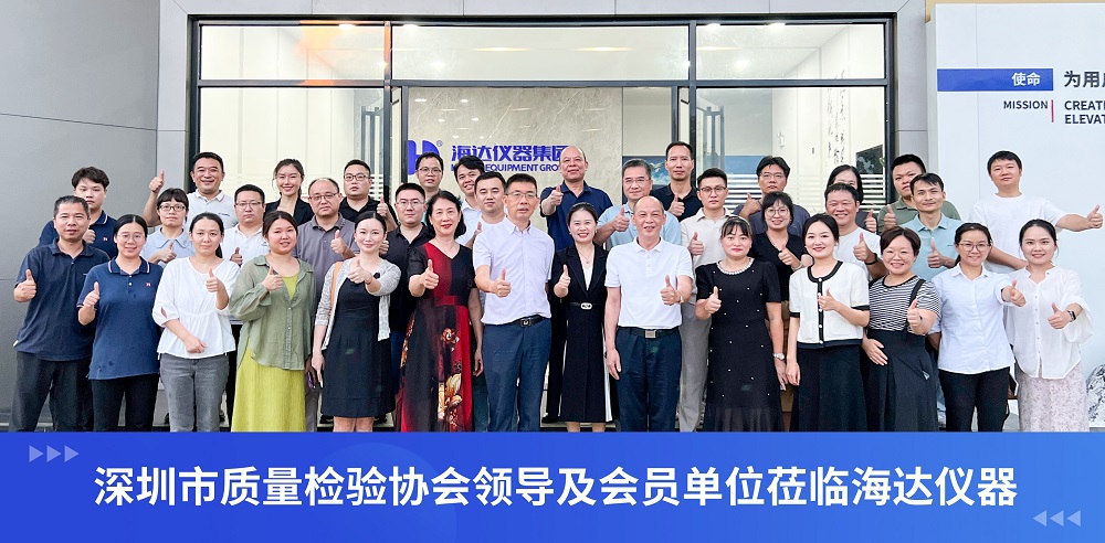 9月26日,在深圳市質量檢驗協會和廣東海達儀器有限公司共同組織下,原深圳市市場監督管理局一級調研員周文、深圳市質量檢驗協會會長鐘勇、深圳市質量檢驗協會執行秘書長任清泉、副秘書長吳漢武及會員代表40余人到訪廣東海達儀器有限公司,我司董事鐘鳳姣、業務負責人張建熱烈歡迎各位嘉賓的到來,并陪同嘉賓通過實地參觀、技術分享、成果發布、互動交流,共同為環境可靠性檢測行業的創新發展注入新思考、搭建新橋梁。